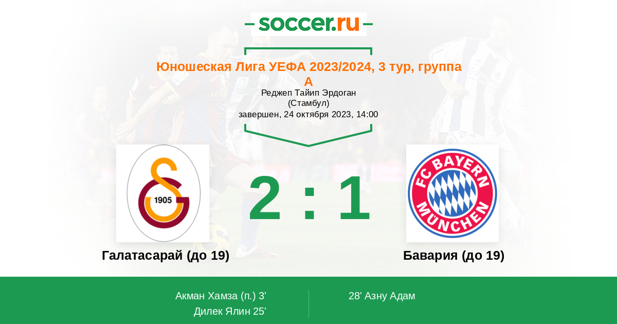 Протокол матча Галатасарай (до 19) против Бавария (до 19)