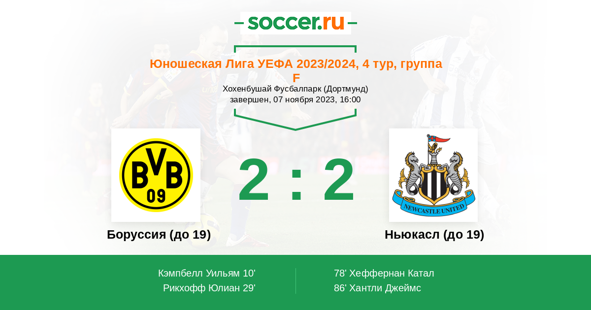 Протокол матча Боруссия (до 19) против Ньюкасл (до 19)