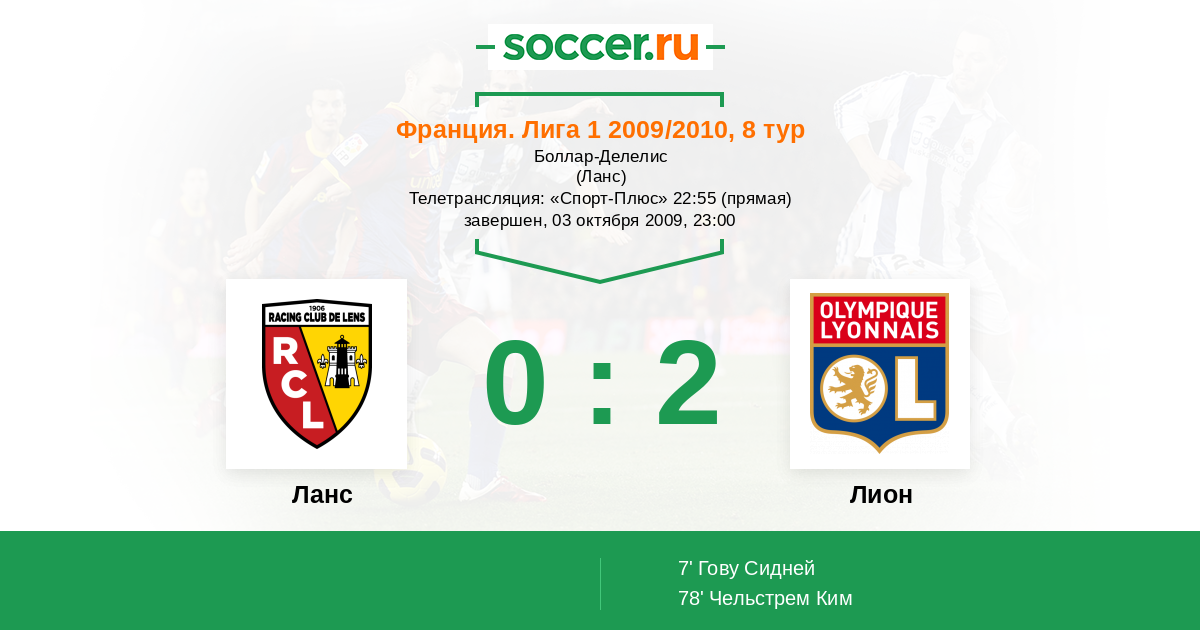 Протокол матча Ланс против Лион
