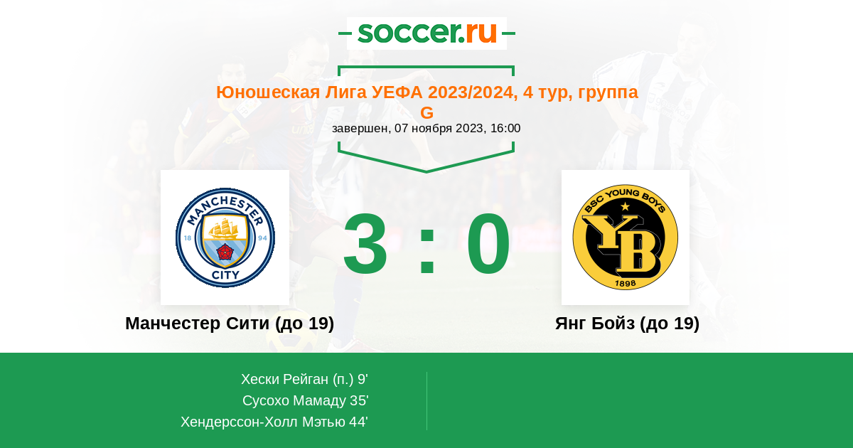 Протокол матча Манчестер Сити (до 19) против Янг Бойз (до 19)