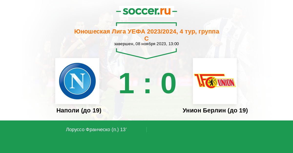 Протокол матча Наполи (до 19) против Унион Берлин (до 19)