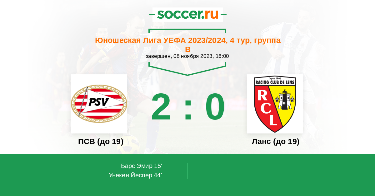 Протокол матча ПСВ (до 19) против Ланс (до 19)