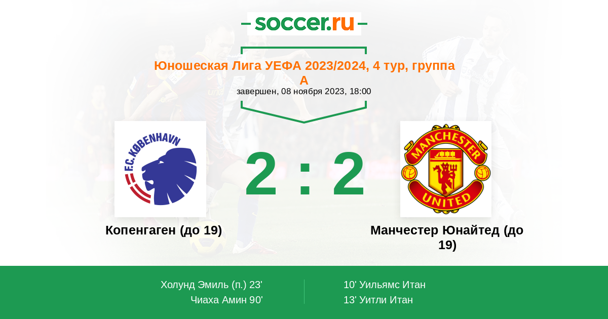 Протокол матча Копенгаген (до 19) против Манчестер Юнайтед (до 19)