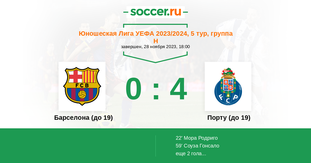 Протокол матча Барселона (до 19) против Порту (до 19)