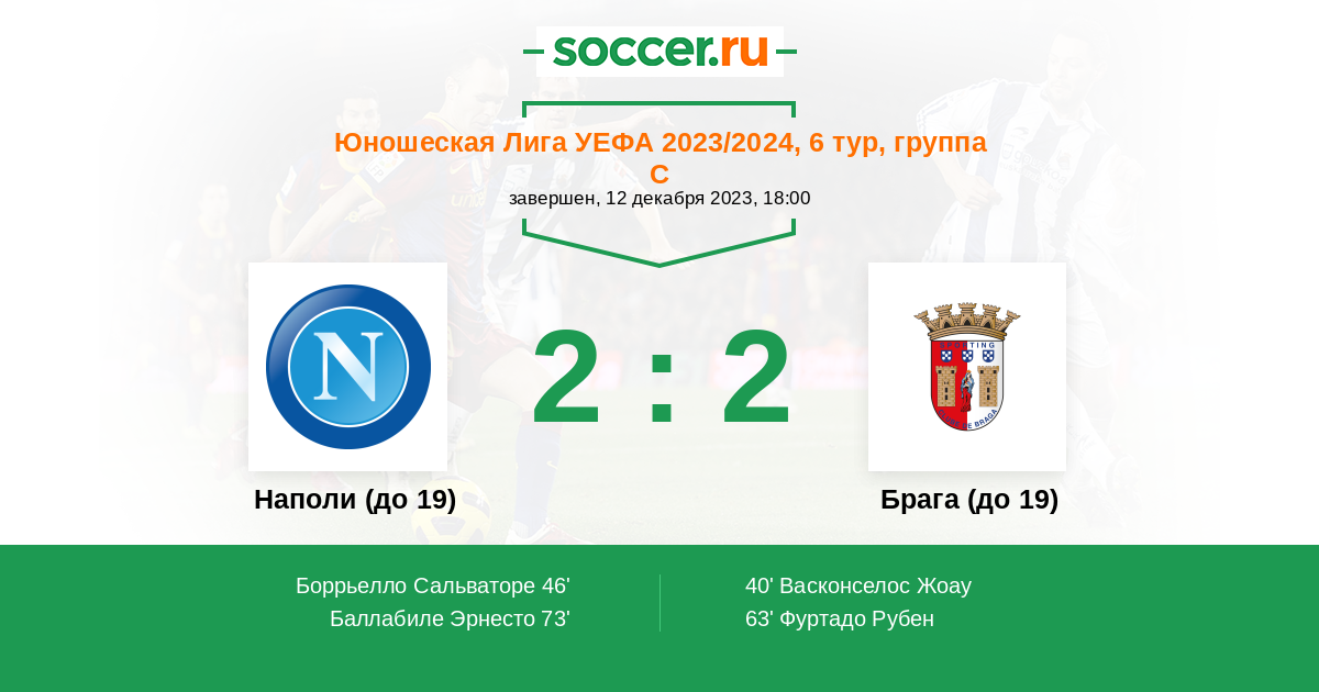 Протокол матча Наполи (до 19) против Брага (до 19)