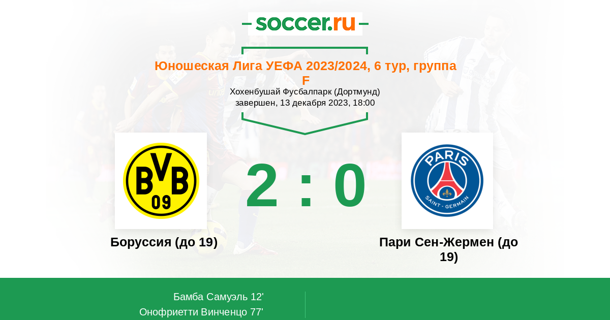 Протокол матча Боруссия (до 19) против Пари Сен-Жермен (до 19)