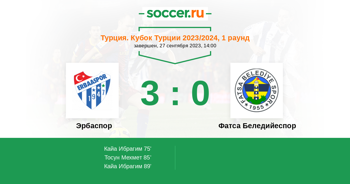 Протокол матча Эрбаспор против Фатса Беледийеспор