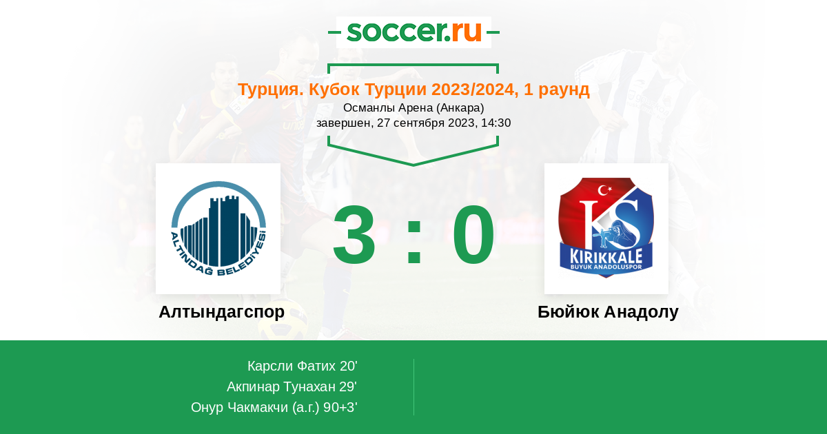Протокол матча Алтындагспор против Бюйюк Анадолу