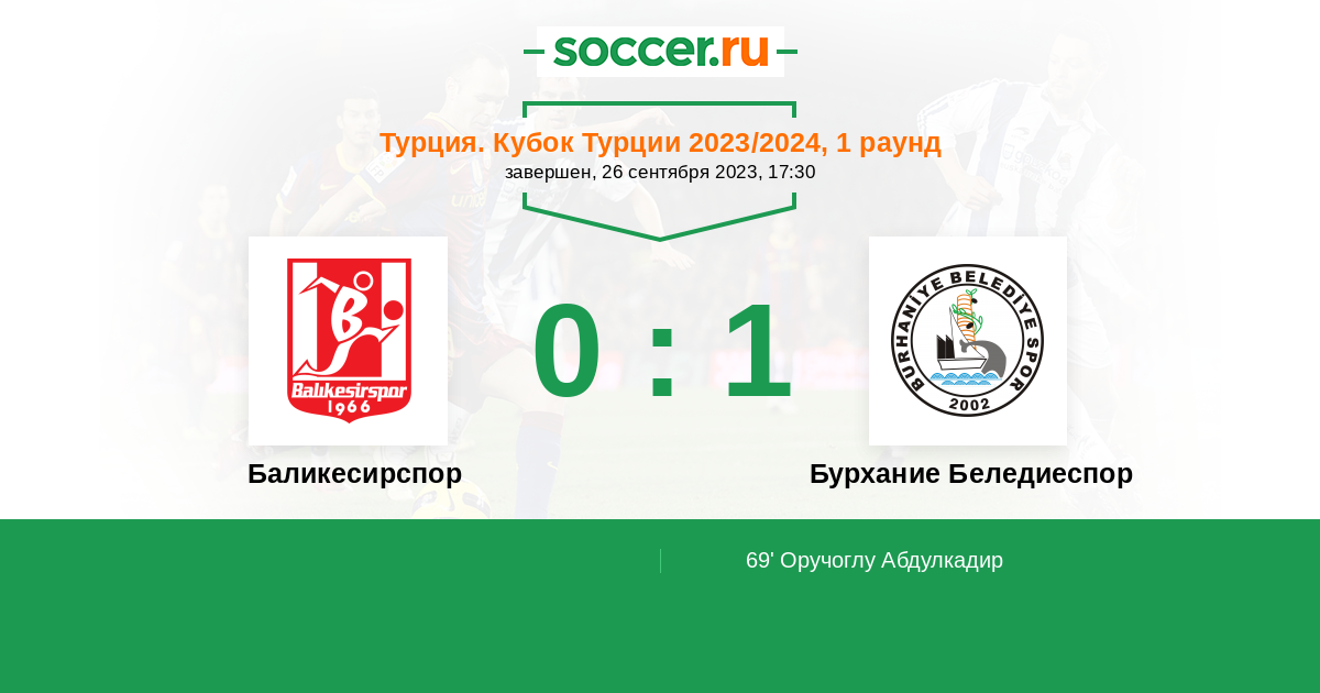 Протокол матча Баликесирспор против Бурхание Беледиеспор