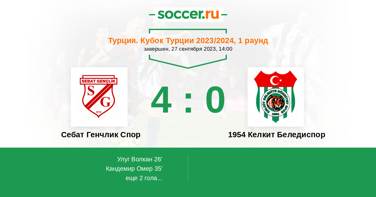 Протокол матча Себат Генчлик Спор против 1954 Келкит Беледиспор