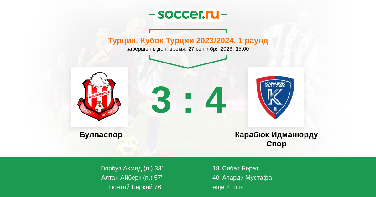 Протокол матча Булваспор против Карабюк Идманюрду Спор