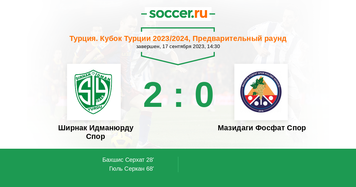 Протокол матча Ширнак Идманюрду Спор против Мазидаги Фосфат Спор
