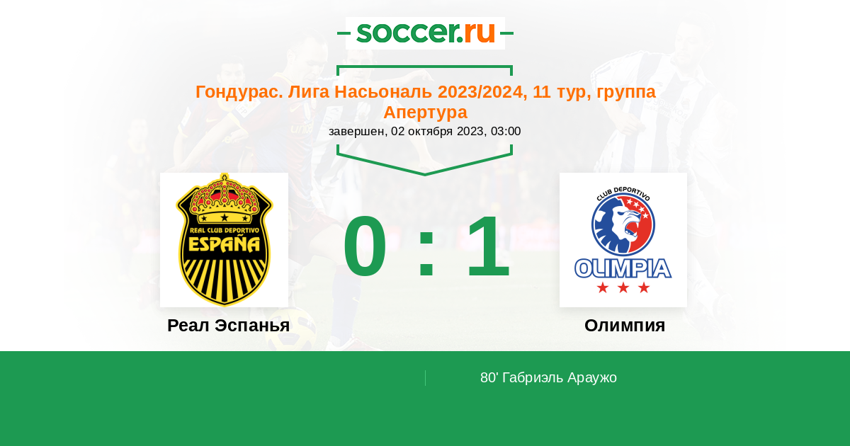 Протокол матча Реал Эспанья против Олимпия