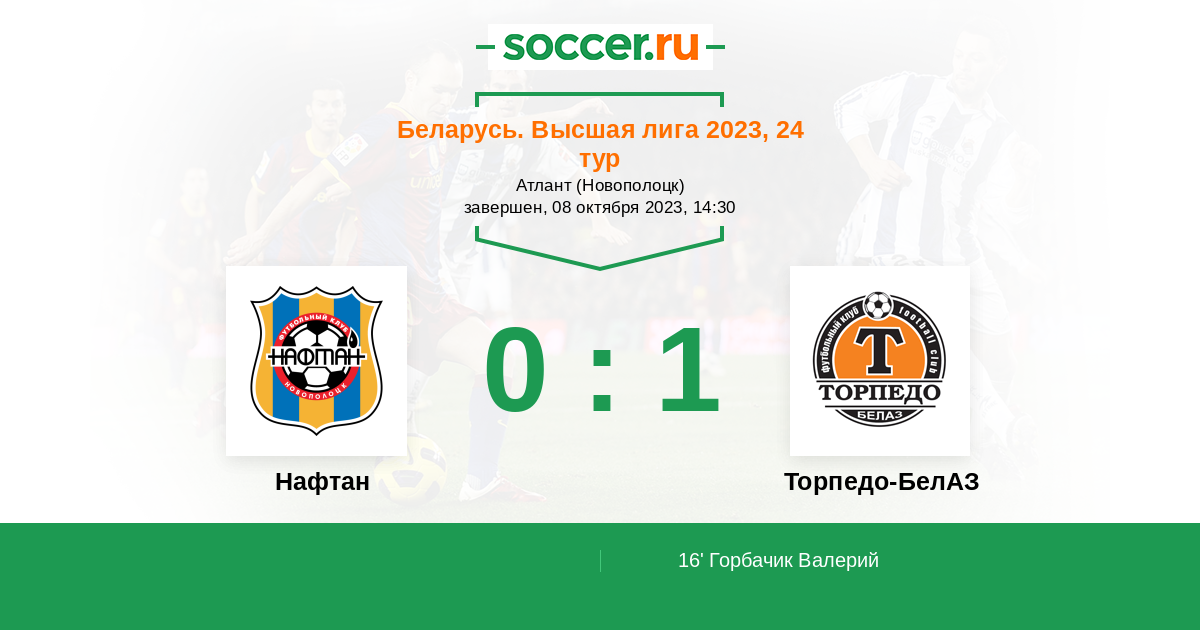 Протокол матча Нафтан против Торпедо-БелАЗ