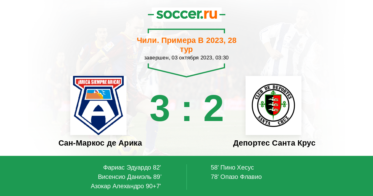 Протокол матча Сан-Маркос де Арика против Депортес Санта Крус