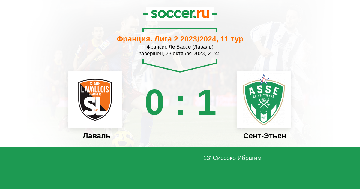 Протокол матча Лаваль против Сент-Этьен