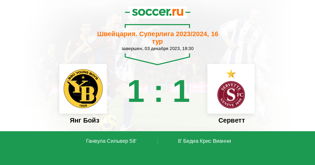 Протокол матча Янг Бойз против Серветт