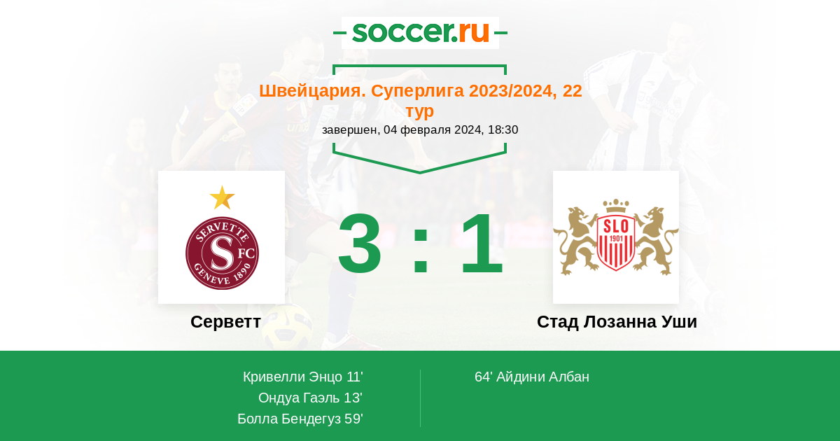 Протокол матча Серветт против Стад Лозанна Уши