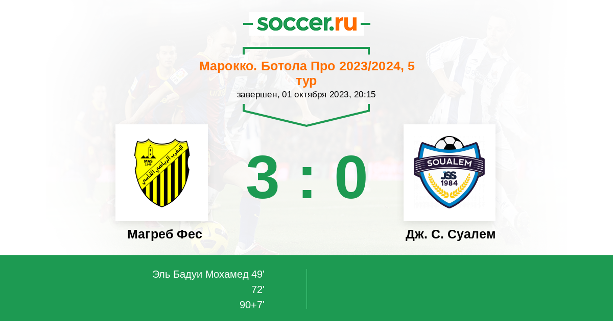 Протокол матча Магреб Фес против Дж. С. Суалем