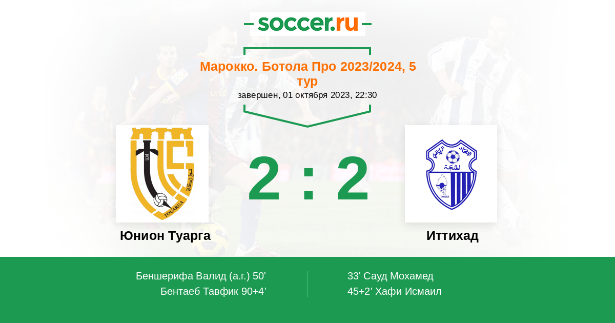 50' (1:2) Автогол Беншерифа Валид (31)