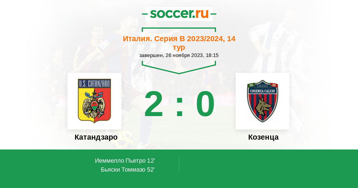 Протокол матча Катандзаро против Козенца