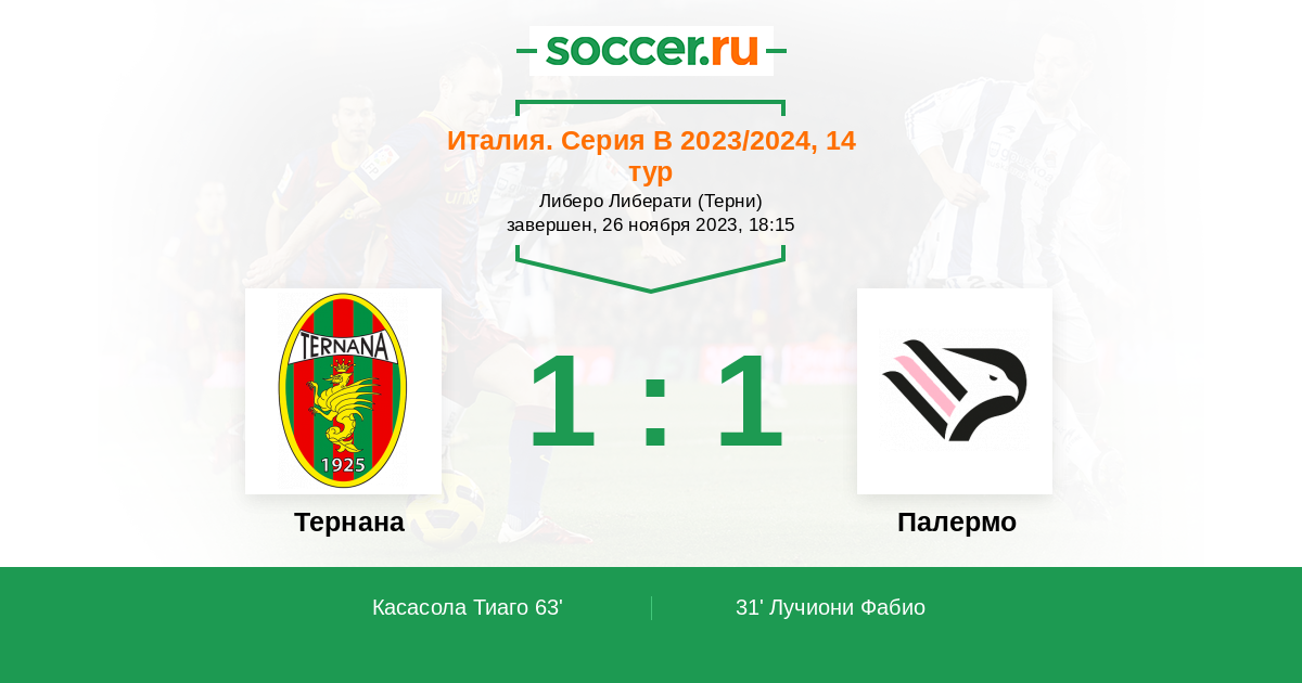 63' (1:1) Касасола Тиаго (15) (Луккези Лоренцо (44))
