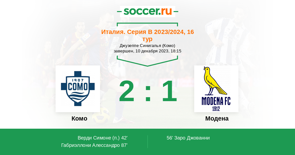 Протокол матча Комо против Модена