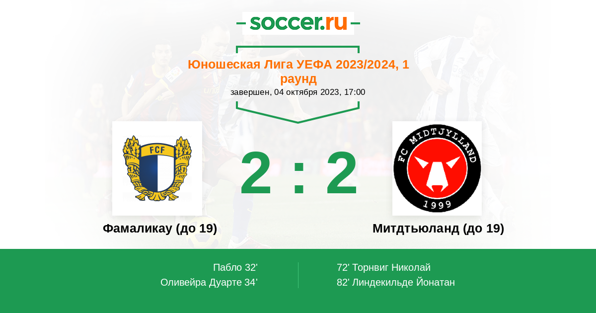 Протокол матча Фамаликау (до 19) против Митдтьюланд (до 19)