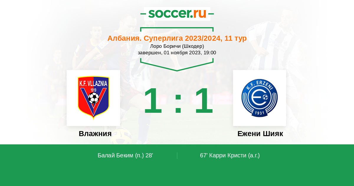 Протокол матча Влажния против Эрзени Шияк