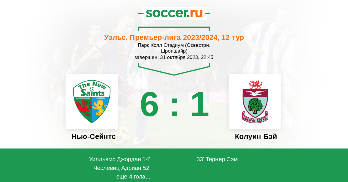 Протокол матча Нью-Сейнтс против Колуин Бэй