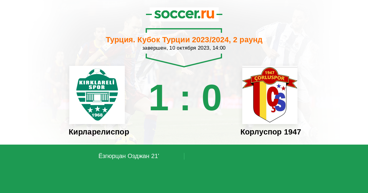 Протокол матча Кирларелиспор против Корлуспор 1947