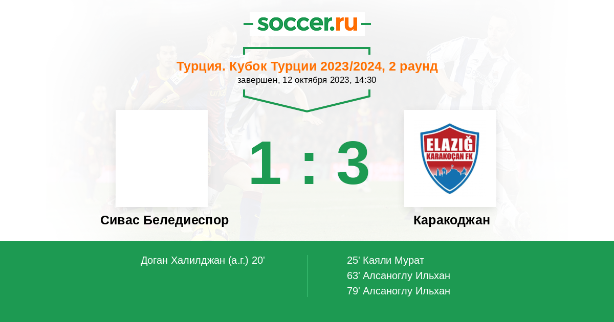 Протокол матча Сивас Беледиеспор против Каракоджан