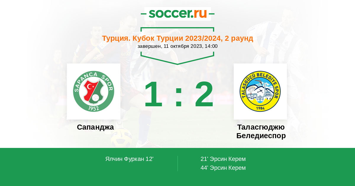 Протокол матча Сапанджа против Таласгюджю Беледиеспор