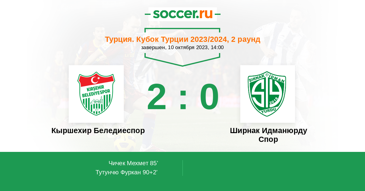 Протокол матча Кыршехир Беледиеспор против Ширнак Идманюрду Спор