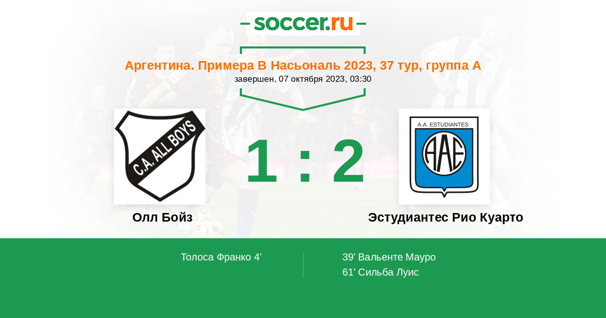 Протокол матча Олл Бойз против Эстудиантес Рио Куарто