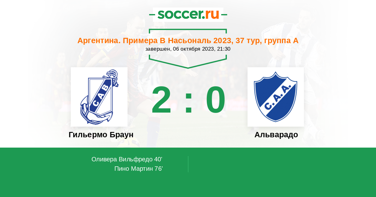 Протокол матча Гильермо Браун против Альварадо