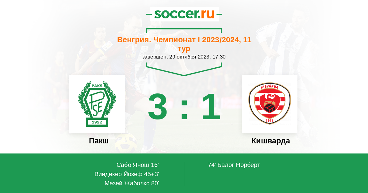 Протокол матча Пакш против Кишварда