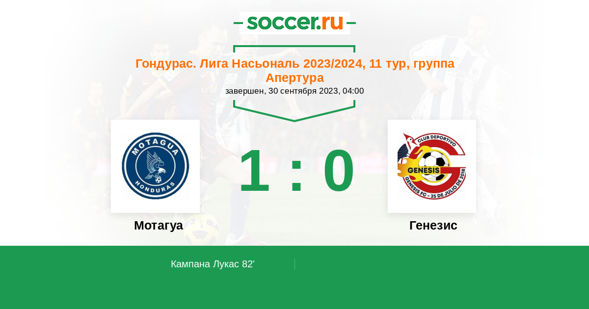 Протокол матча Мотагуа против Генезис