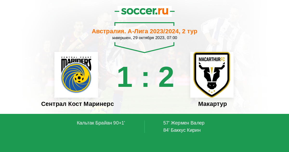 Протокол матча Сентрал Кост Маринерс против Макартур