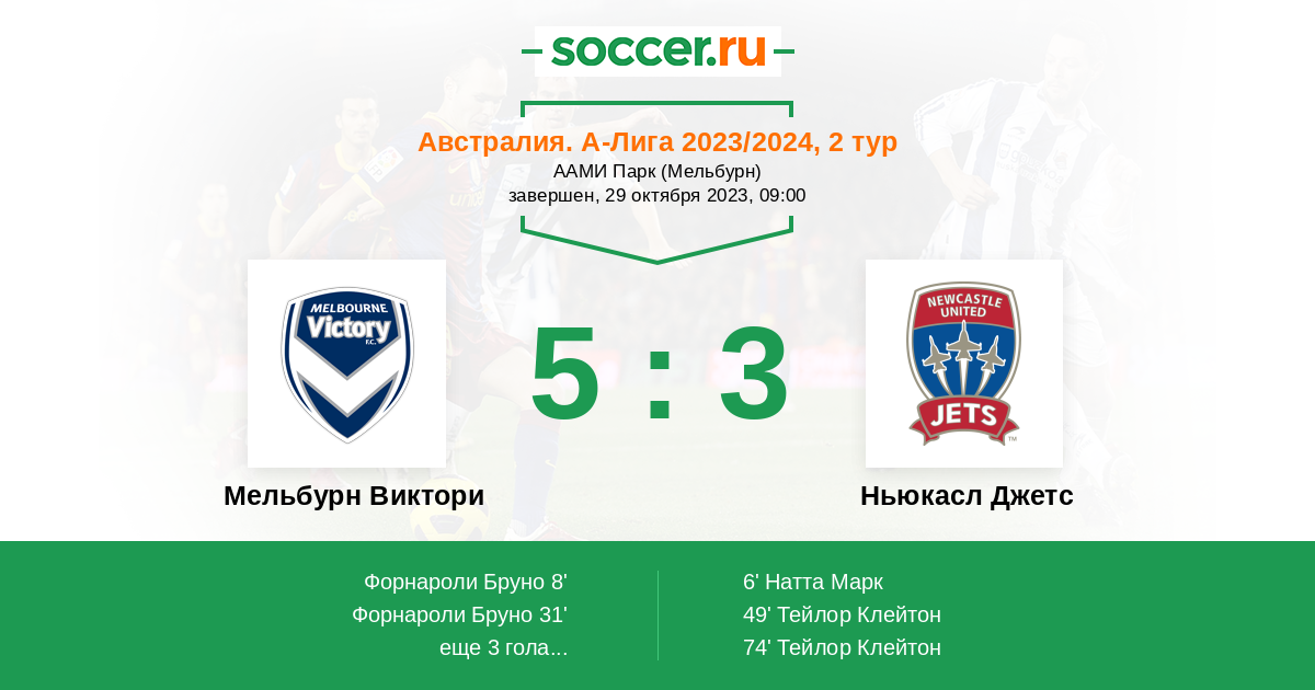 Протокол матча Мельбурн Виктори против Ньюкасл Джетс