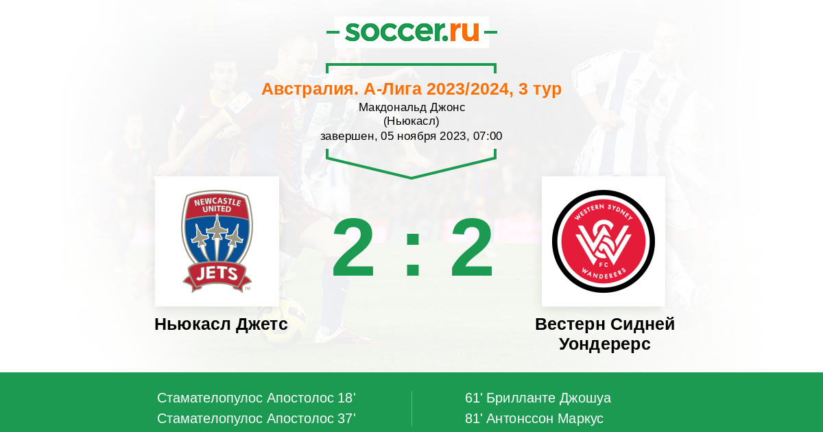 Протокол матча Ньюкасл Джетс против Вестерн Сидней Уондерерс
