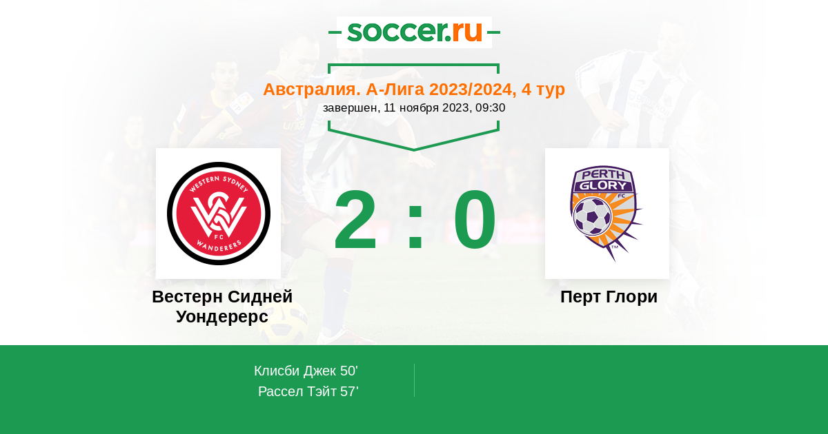 Протокол матча Вестерн Сидней Уондерерс против Перт Глори
