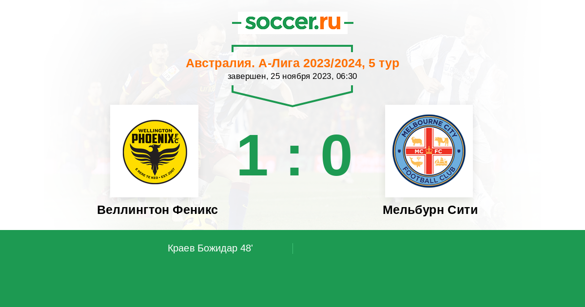 Протокол матча Веллингтон Феникс против Мельбурн Сити