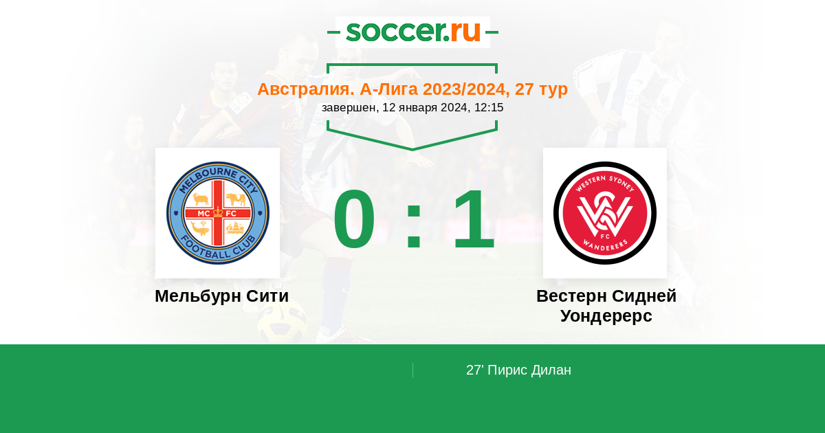 Протокол матча Мельбурн Сити против Вестерн Сидней Уондерерс