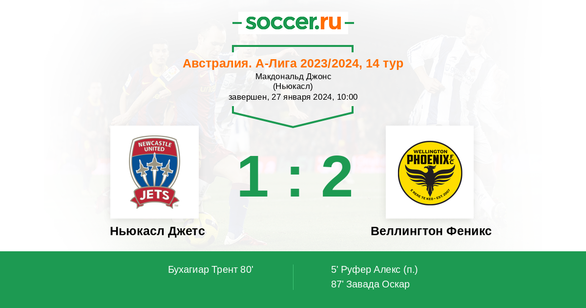 Протокол матча Ньюкасл Джетс против Веллингтон Феникс