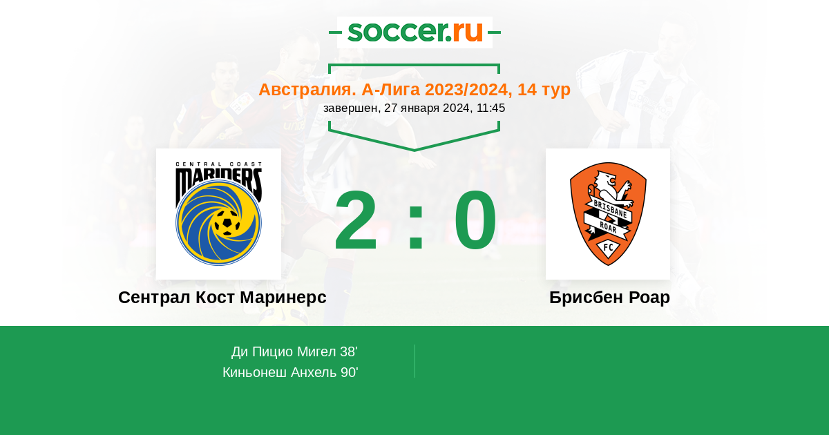 Протокол матча Сентрал Кост Маринерс против Брисбен Роар