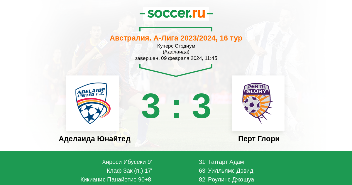 Протокол матча Аделаида Юнайтед против Перт Глори