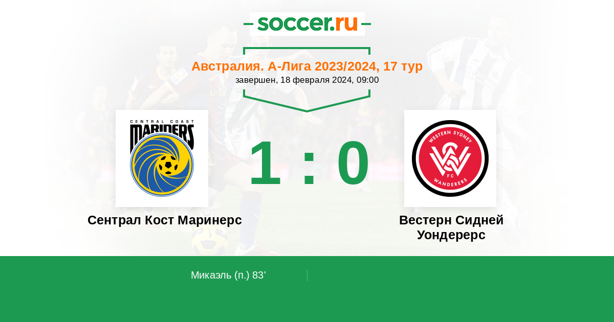 Протокол матча Сентрал Кост Маринерс против Вестерн Сидней Уондерерс