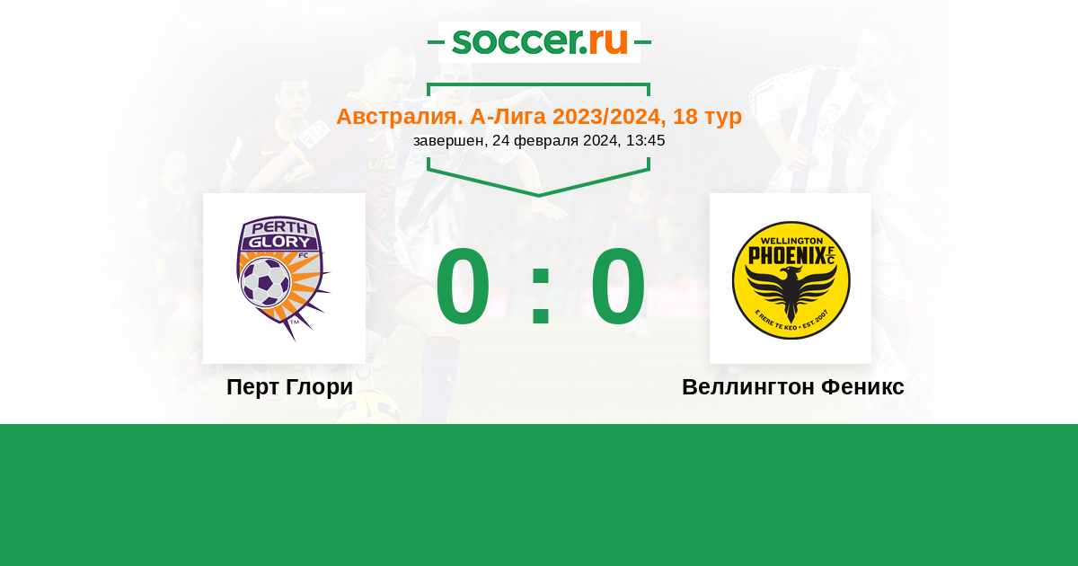 Протокол матча Перт Глори против Веллингтон Феникс