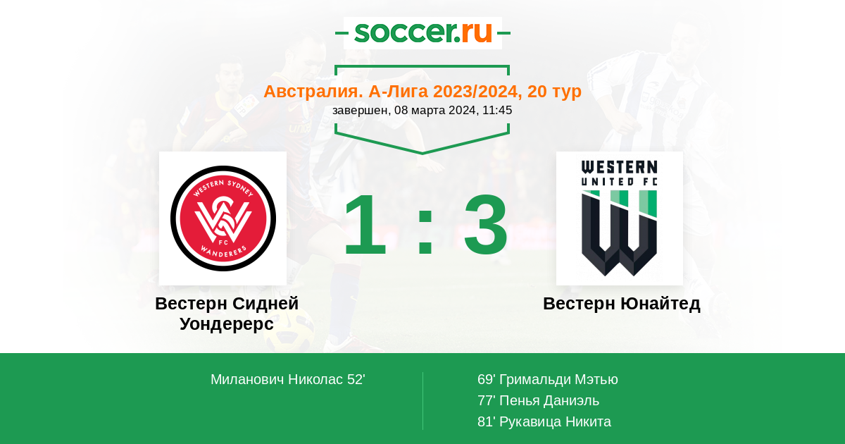 Протокол матча Вестерн Сидней Уондерерс против Вестерн Юнайтед